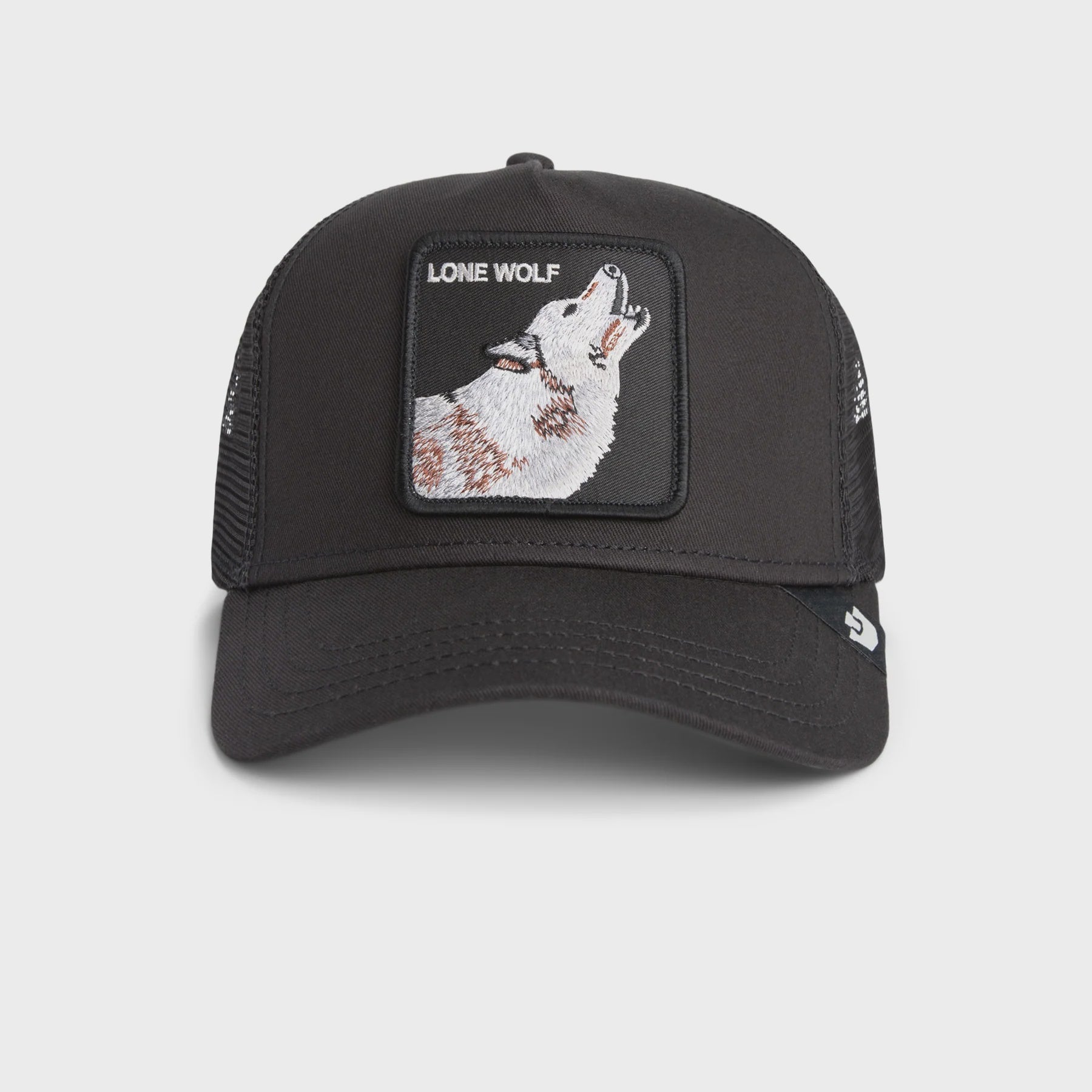 A part of the Goorin Bros Trucker Cap series - The Lone Wolf Trucker Cap - Void, is ready for wearing.