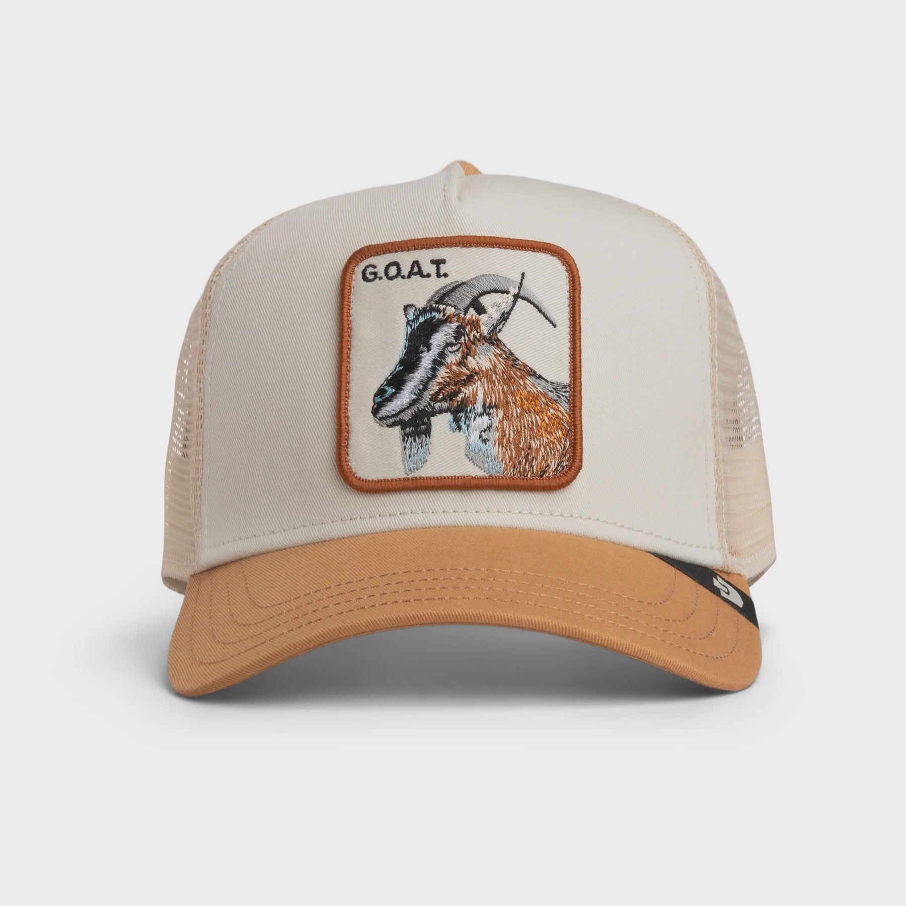 Part of the Goorin Farm Trucker Cap series - The Goat Trucker Cap - Chalk/Heat is ready to wear.