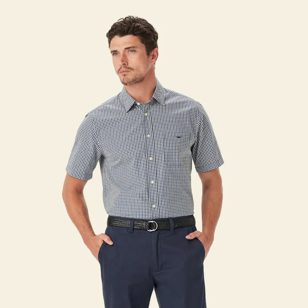 Classic Poplin Check Shirt SS - Navy/Char