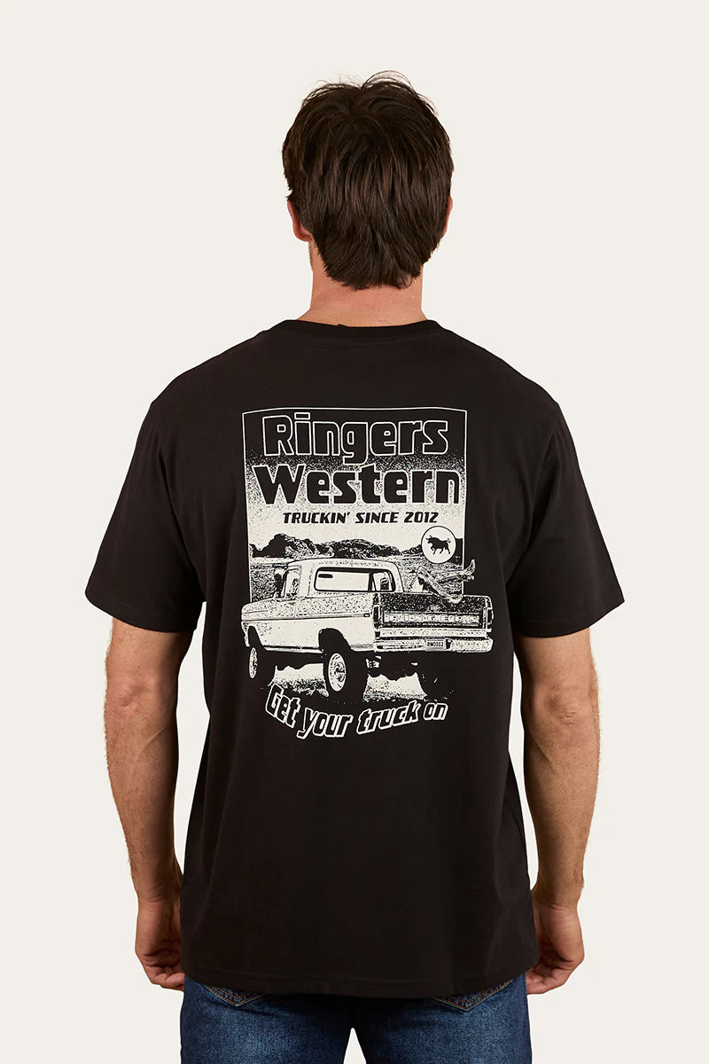 For the car-loving cowboy, this Ringers Western Men’s Loose Fit Graphic T-Shirt is the ultimate everyday staple. Made for those who live for the open road, the rumble of a big engine, and the freedom of the drive. Whether you're upping the horsepower in the shed, chilling at a festival, or kicking back with your mates, the Get Your Truck On graphic makes it clear where your heart lies.